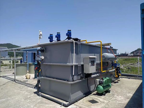 廢水由污水泵從調(diào)節(jié)池抽向氣浮池。這樣可使藥液和污水通過污水泵的葉輪旋轉(zhuǎn)而得到充分的混合。藥液由自動(dòng)加藥裝置供給。加過藥的污水進(jìn)入氣浮池中,污水得到充分的聚凝。
